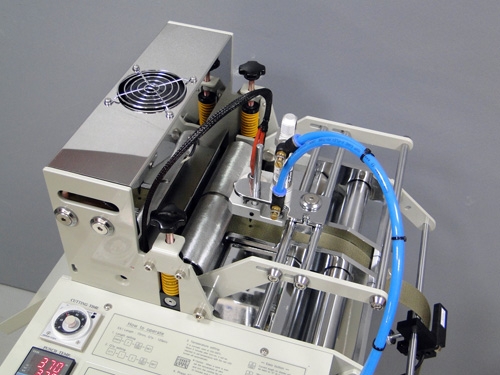 Das Material wird durch eine keilförmige Schneidkante durchschmolzen. Somit ergibt sich eine verschweißte Schnittkante ohne Grat. Durch das Verschweissen wird ein Ausfransen der Kante verhindert. Die Schneidzeit (Einwirkzeit der Schneidkante) wird über ein Drehknopf von 0,1s-3s eingestellt. Die pneumatisch angetriebene Gegenplatte presst das Material an die Schneidkante. Die Schneidtemperatur lässt sich sehr einfach über einen digitale Regeleinheit einstellen. Ebenso einfach ist die Eingabe der Schneidlänge und Stückzahl. Ist die gewünschte Stückzahl erreicht, stoppt das Gerät automatisch. Geht während dem Schneiden das Material aus, so stoppt das Gerät automatisch.