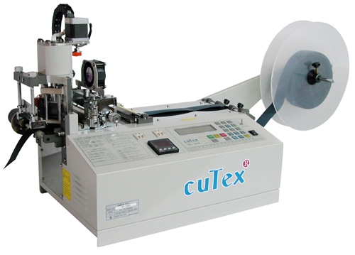 Das CUTEX TBC55HX ist ein Heißschneidegerät bei dem das Band mit einem Winkelschnitt durchtrennt wird. Dabei können der Anfangs- und Endwinkel unabhängig voneinander über einen Ziffernschalter eingestellt werden. Die schwenkbare Schneidkante wird automatisch von einem Schrittmotor angefahren. Es können diverse synthetische Materialien mit diesem Gerät auf Länge geschnitten werden z.B. Gewebeband, leichtes Gurtband aber auch Klett- & Flauschband ist möglich.