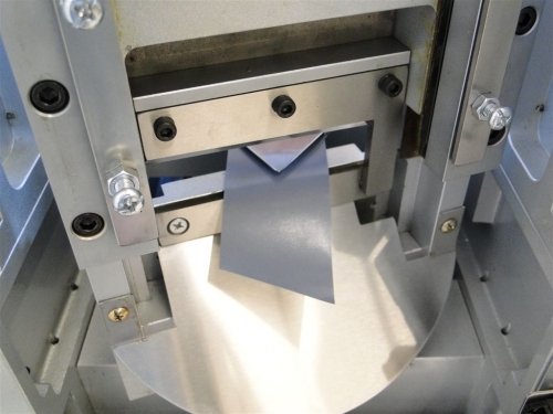 Mit einer einfachen Umrüstung kann der Schneidautomat von einem Heißschneideautomaten auf Kaltschnitt umgebaut werden. Das Kaltschneidewerkzeug arbeitet im Scherschnittverfahren mit einem Ober- und Untermesser. Das Kaltschneidewerkzeug ist im Lieferumfang enthalten.